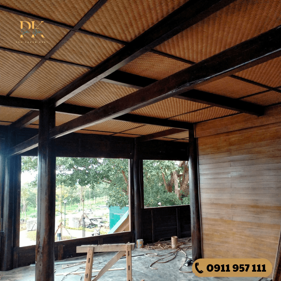 Trần cót ép nhân tạo cho không gian nhà gỗ truyền thống