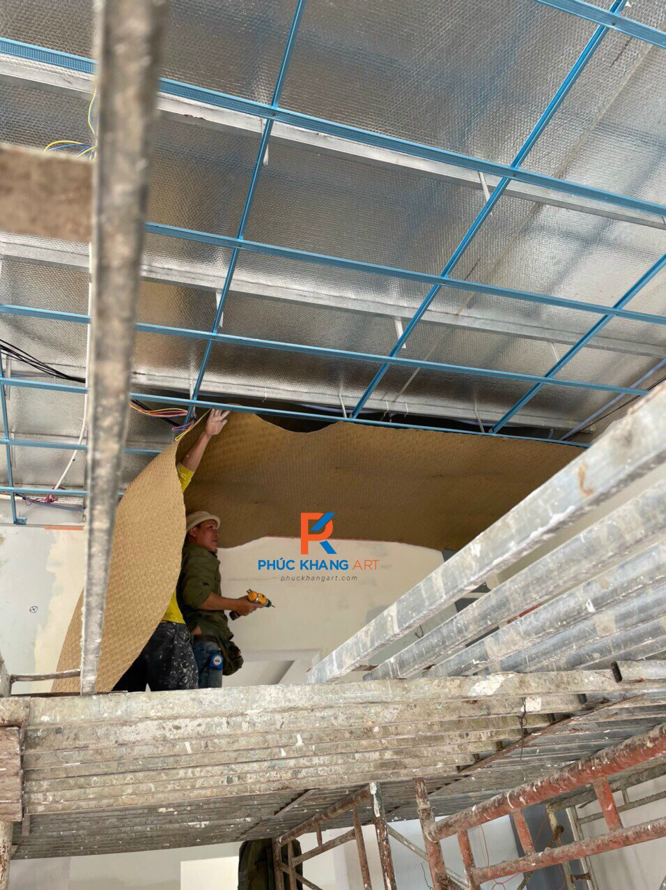 3. Thi công Cót ép nhân tạo trên trần thả, thi công song song với sàn