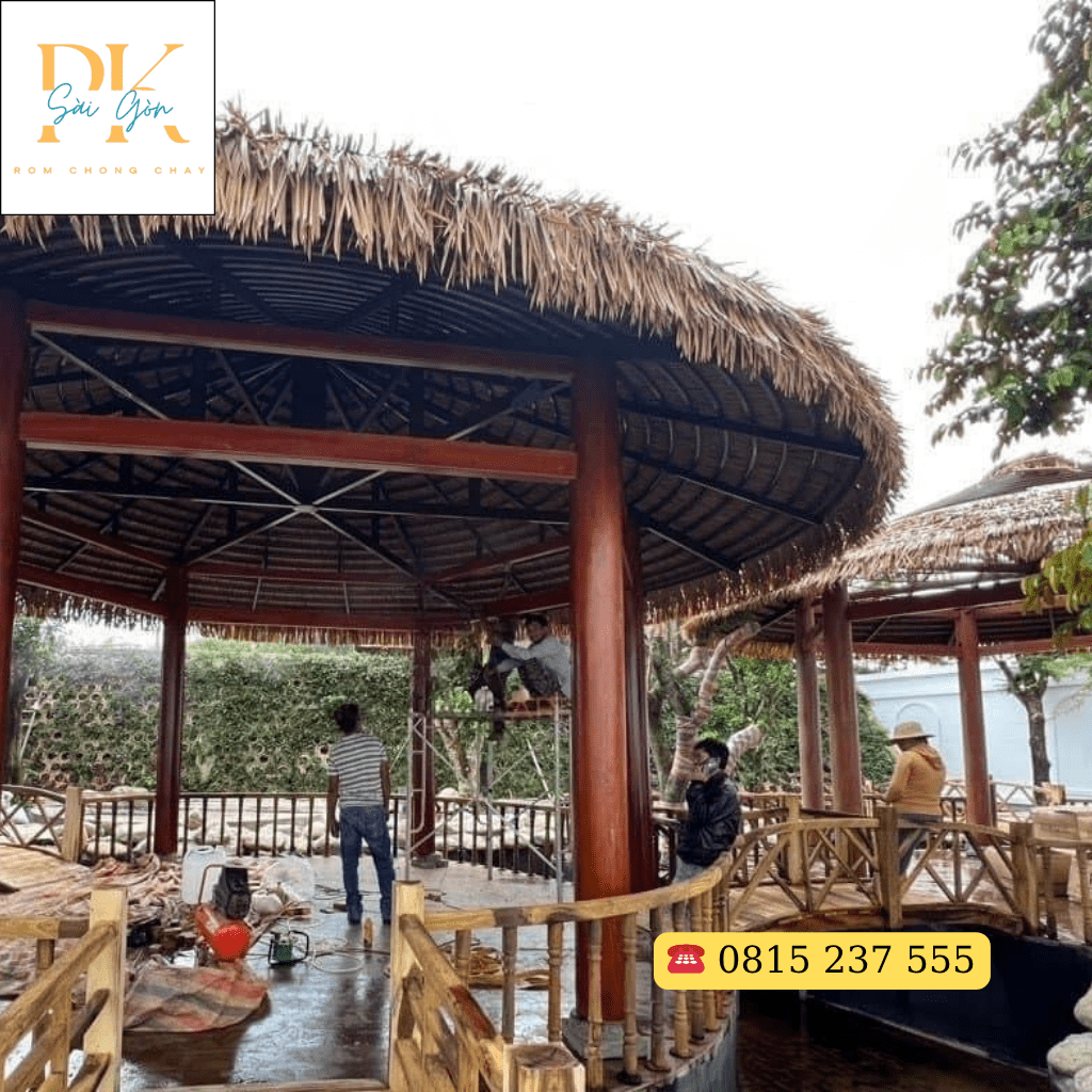 Cơ bản hoàn thiện mái rơm nhân tạo, đảm bảo dày, đẹp và chống thấm tuyệt đối
