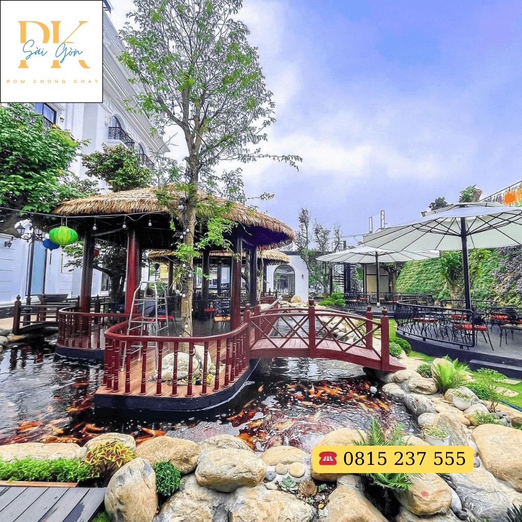 Coffee Koi và mái lá nhân tạo – sự kết hợp hài hòa giữa truyền thống và hiện đại