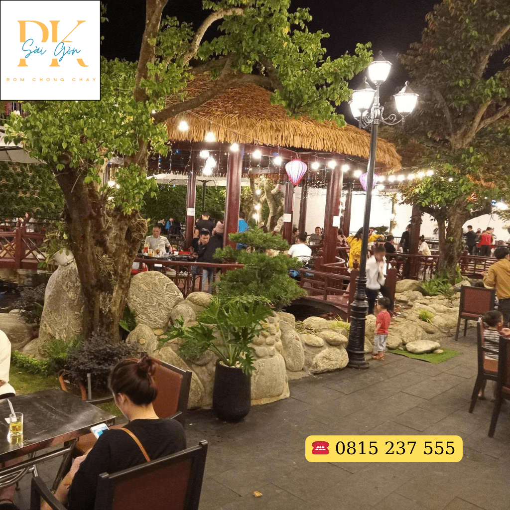 Chút đèn lồng, chút ánh đèn vàng cùng mái rơm nhân tạo gợi nên một ký ức xưa thật đẹp, thật thân thuộc